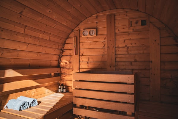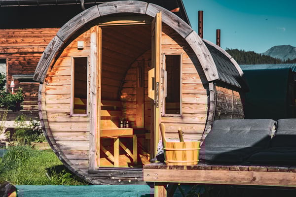 Exklusiv für unsere Gäste steht die Sauna in einem eigenen Fass zur Verfügung. Sie geben uns einfach Bescheid wann Sie die Sauna gerne nutzen möchten und wir bereiten für Sie alles vor. Nach Lust und Laune erstellen Sie Ihre Aufgüsse aus diversen Geschmäckern (Saunaölen) selber und geniessen die Ruhe und Zweisamkeit in der Natur.